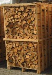 Brennholz Buche ca. 3srm je Palette, geschnitten auf 33cm und gespaltet, ca. 20% Restfeuchte. Gestapelt auf einer Einwegpalette, welche bei Kunden verbleibt.
